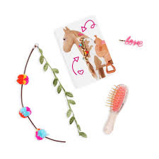 Accesorios de estilismo incluidos: viene con silla de montar estilo western, rienda, cepillo redondeado, pin de cabello, extensión decorativa para el peinado y una tarjeta con guía de estilo.