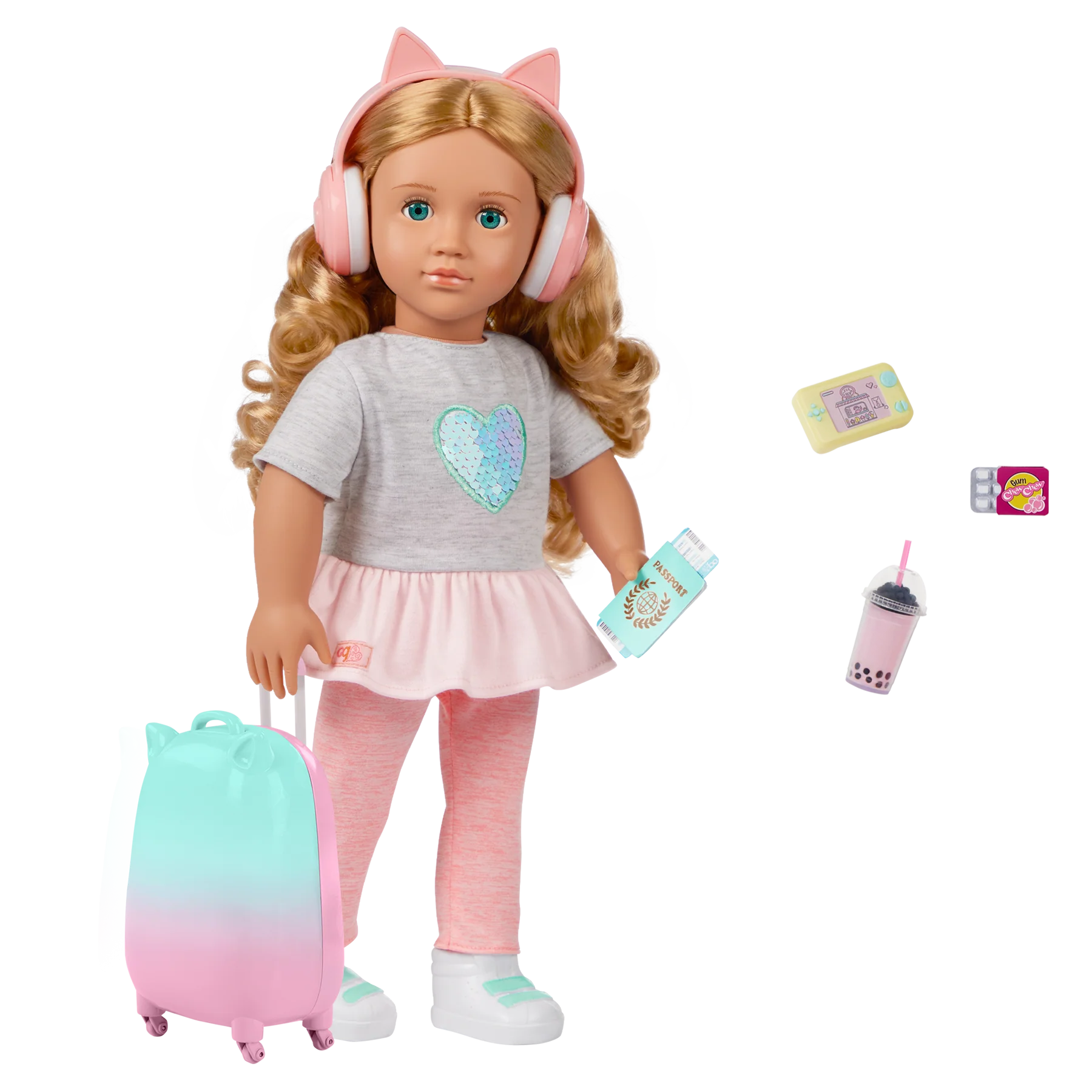 - Conjunto de muñeca y equipaje de 18 pulgadas: ¡viaja alrededor del mundo con dulce estilo con la muñeca Linzi de 18 pulgadas de Our Generation!