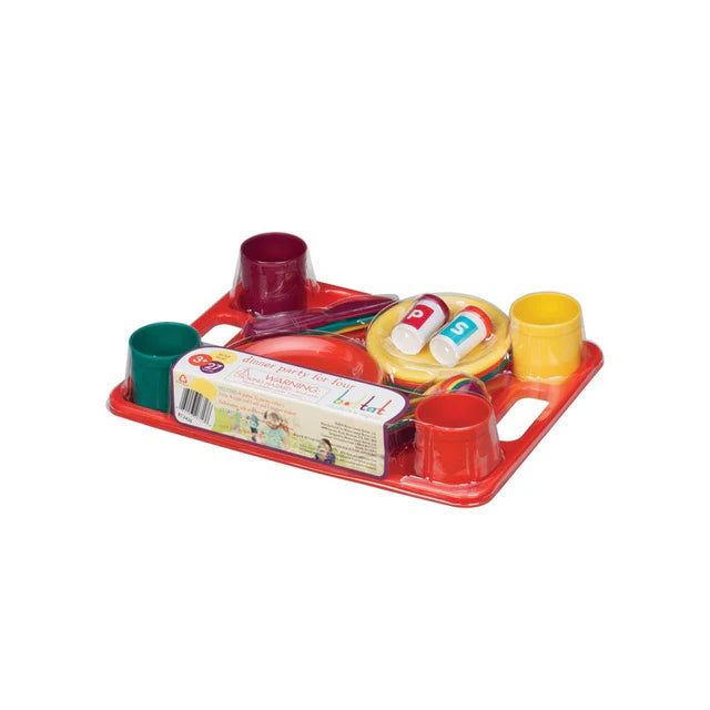 ¡Invita a tus mejores amigos a una cena encantadora con la Cena Battat para Cuatro! Este juego, perfectamente formado, irrompible y apto para lavavajillas, es perfecto para estimular la imaginación a través del juego de roles, y sus piezas robustas son fáciles de manipular para las pequeñas manos.
