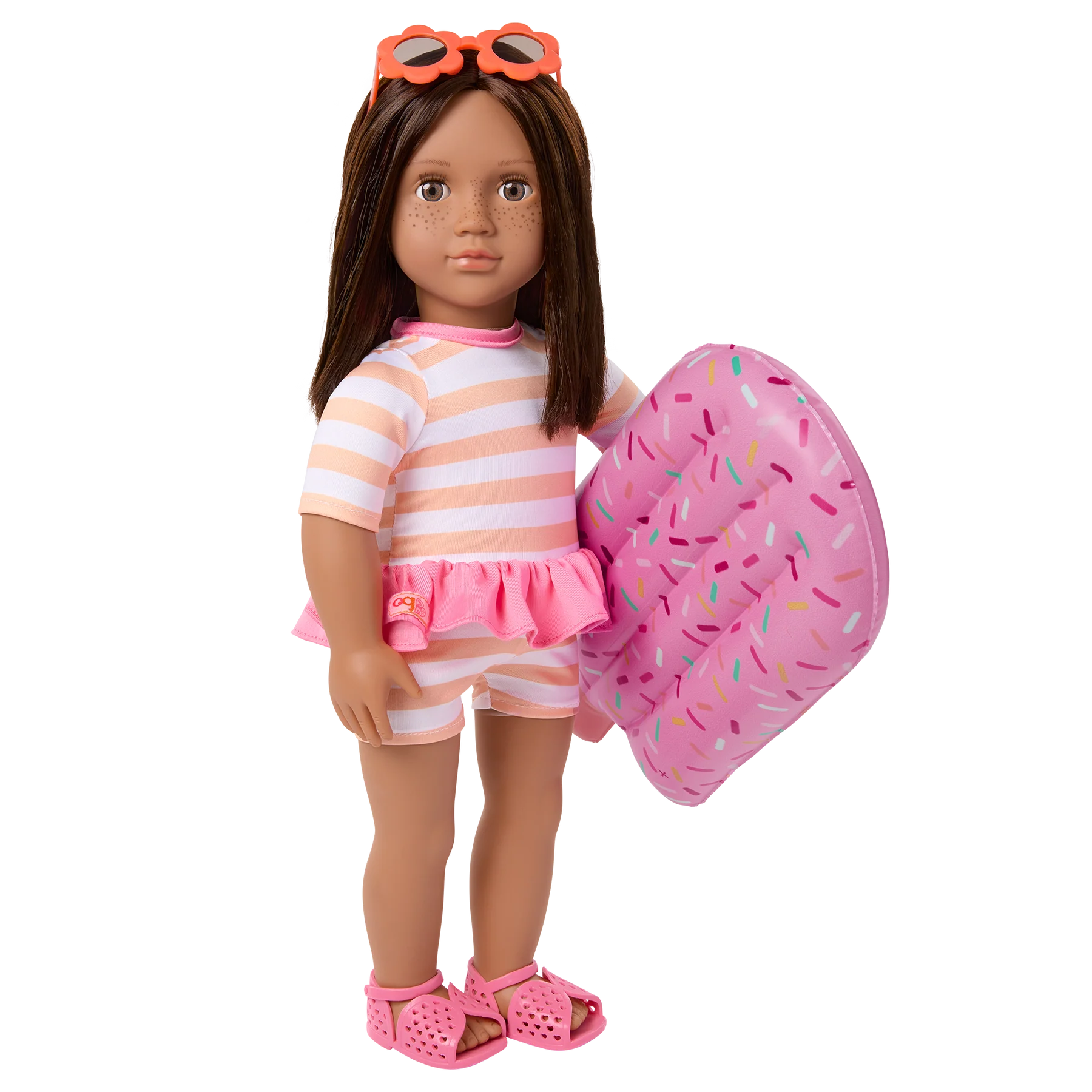 - Muñeca de 18 pulgadas con traje de baño: ¡Explora las olas de los días de playa y las aventuras de vacaciones con la muñeca Helena de 18 pulgadas de Our Generation!