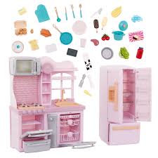 Accesorios incluidos: refrigerador, horno, microondas, lavavajillas, utensilios de cocina, platos, vasos y alimentos de juguete.
