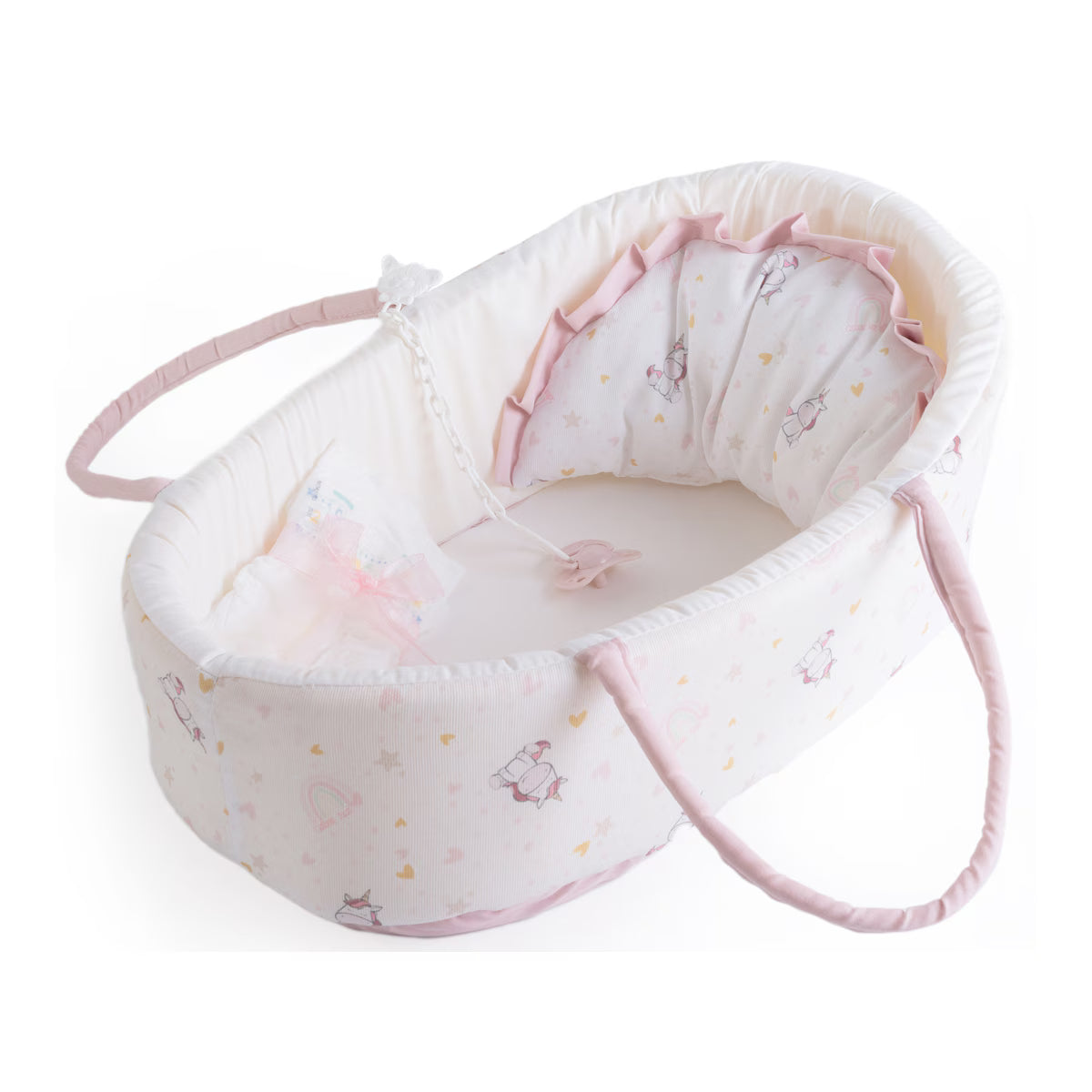 El Capazo de Unicornios de Muñecas Antonio Juan es más que un simple accesorio de juego. Es un espacio donde tu muñeca puede descansar, soñar y disfrutar de tus aventuras juntas. Decorado con encantadores unicornios, este capazo aporta una dosis extra de magia a tus juegos.