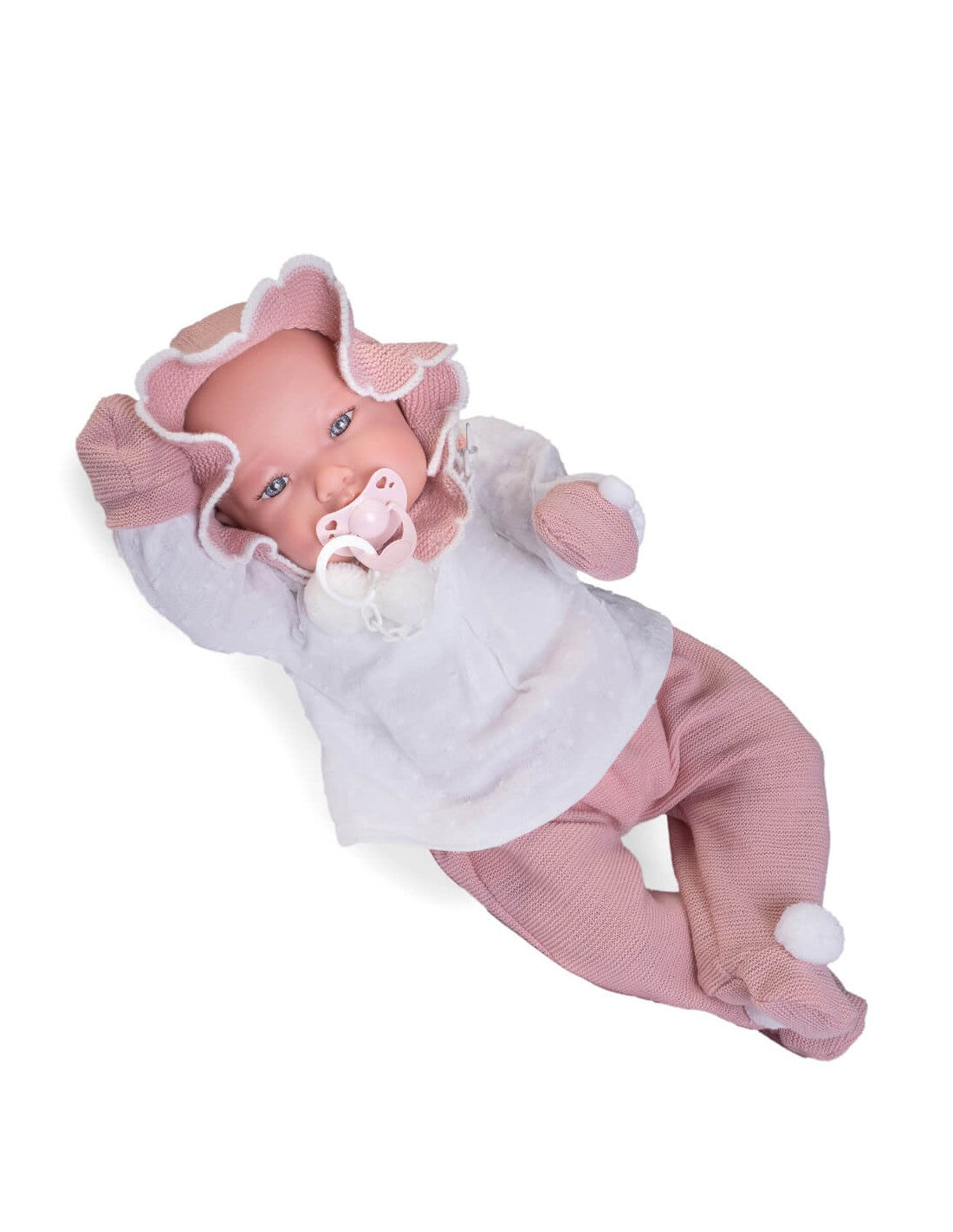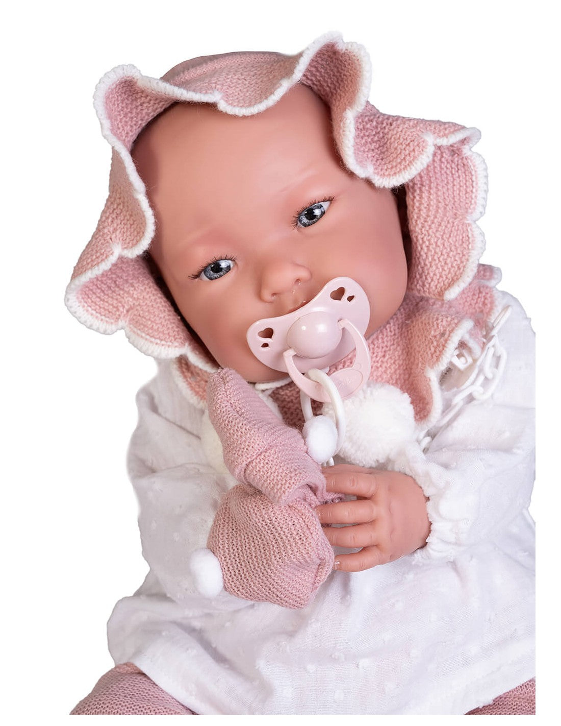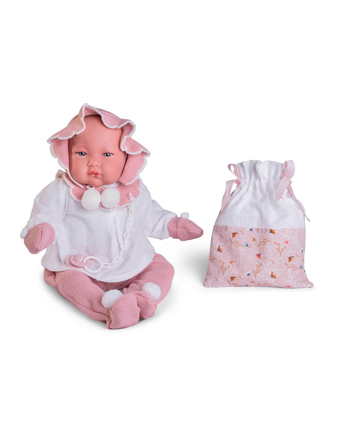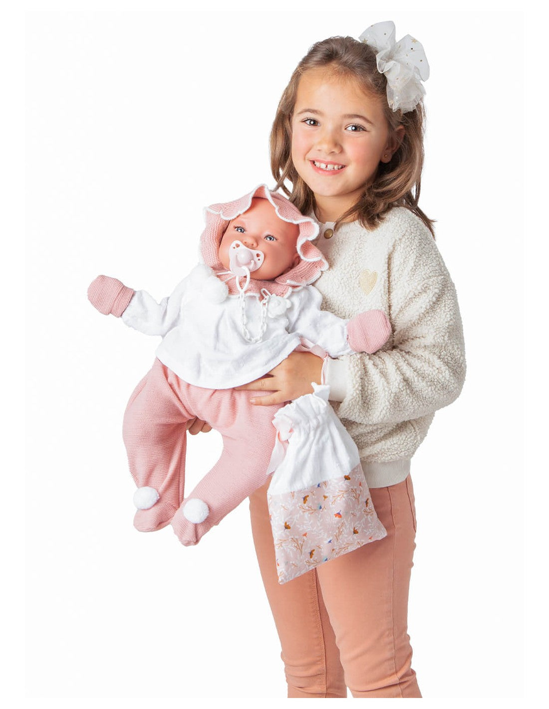 Mi Primer Reborn son muñecas realistas con las que podrás disfrutar como de un bebé casi real. Fíjate en su manicura, el peso o la babita que le asoma entre los labios... Una elección perfecta pensando en el juego de los más pequeños. A mi Primer Reborn Alejandra le encanta ir de paseo, por eso se ha vestido hoy tan bonita. con su pantalón de punto a juego de su capota y su camisa blanca, no le falta ningún detalle. Lleva una bolsita para ti. ¡Guarda todo lo que necesites para pasar una tarde de juegos con Alejandra! Además lleva pañal como un bebé de verdad. Mide 52 cm. Incluye un libro de familia para tu Reborn de Muñecas Antonio Juan.