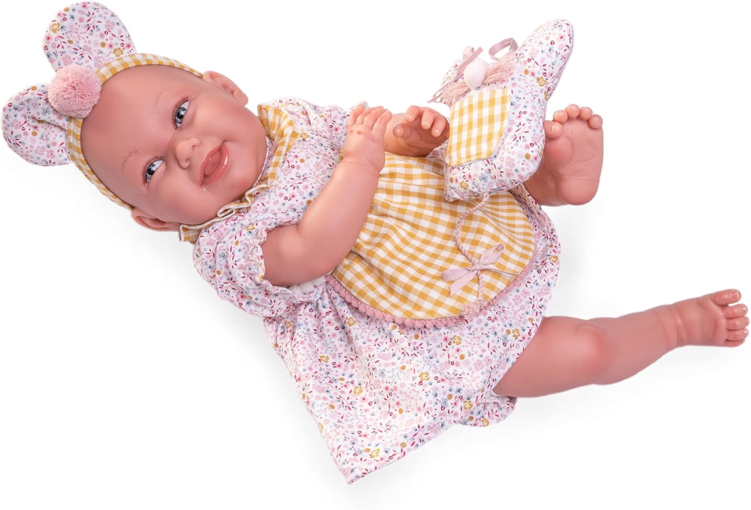 Vestida con un conjunto adorable de orejitas y vestido a juego, Martina está lista para jugar y cuidar de tus dientes. Importante destacar que su ropa está confeccionada con tejidos "Organic Cotton". Esto significa que durante su cultivo y producción no se han utilizado productos químicos, solo materiales naturales. Al igual que un bebé real, Martina también lleva un pañal.