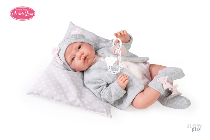 Los Recién Nacidos de Muñecas Antonio Juan son compañeros inseparables para los más pequeños, diseñados para largos días de juego lleno de ternura y creatividad. Cada detalle, desde sus facciones hasta la confección de su ropa y accesorios, ha sido cuidadosamente elaborado para ofrecer realismo y calidad en cada muñeca.