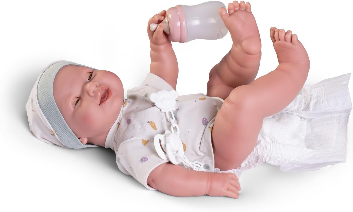 Esta muñeca, al ser alimentada con su biberón, ofrece la singularidad de poder hacer pipí, proporcionando a los niños una oportunidad realista de aprender a cambiar un pañal. Esta capacidad interactiva de Mia, sumada a su encantadora apariencia, vestida con un peto verde, una camiseta a juego y un gorrito, la convierte en una amiga de juego inigualable, no solo por sus funciones sino también por su estética adorable.