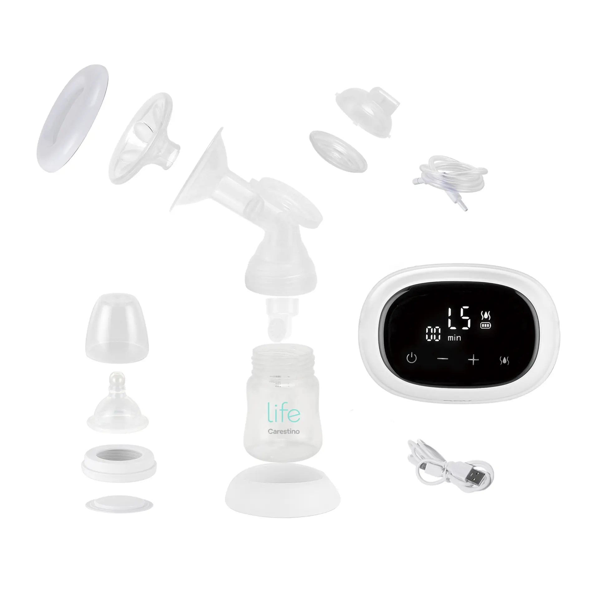 El saca leche eléctrico con mamadera de Carestino es ideal para madres que tienen una frecuencia de uso mayor. Permite extraer mayor cantidad de leche en menos tiempo y con un menor esfuerzo de la madre.